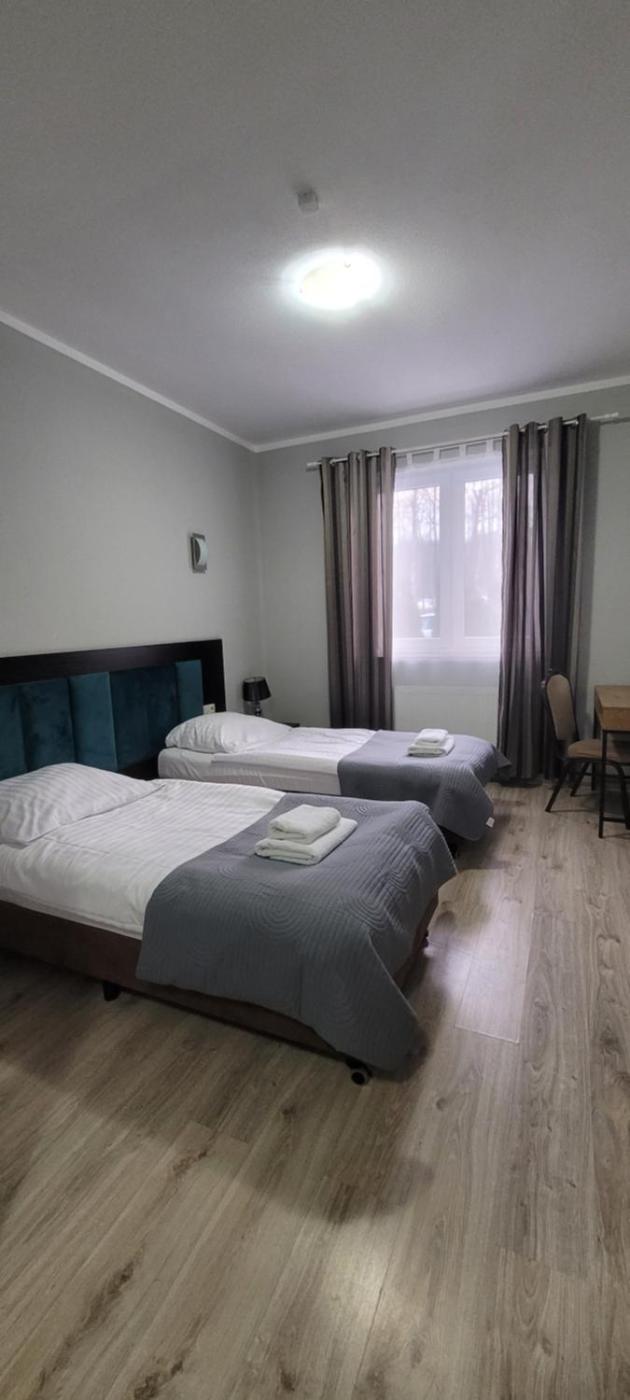 Pokój Czteroosobowy. The quadruple room offers a tea and coffee maker, parquet floors, as well as a private bathroom boasting a shower and a hairdryer. The quadruple rooms kitchenette, which has a refrigerator and kitchenware, is available for cooking and storing food. This quadruple room provides heating and a TV. The unit has 4 beds. Pokój Czteroosobowy - 4 osobowy. Powierzchnia pokoju ok.: 25 mkw. ;