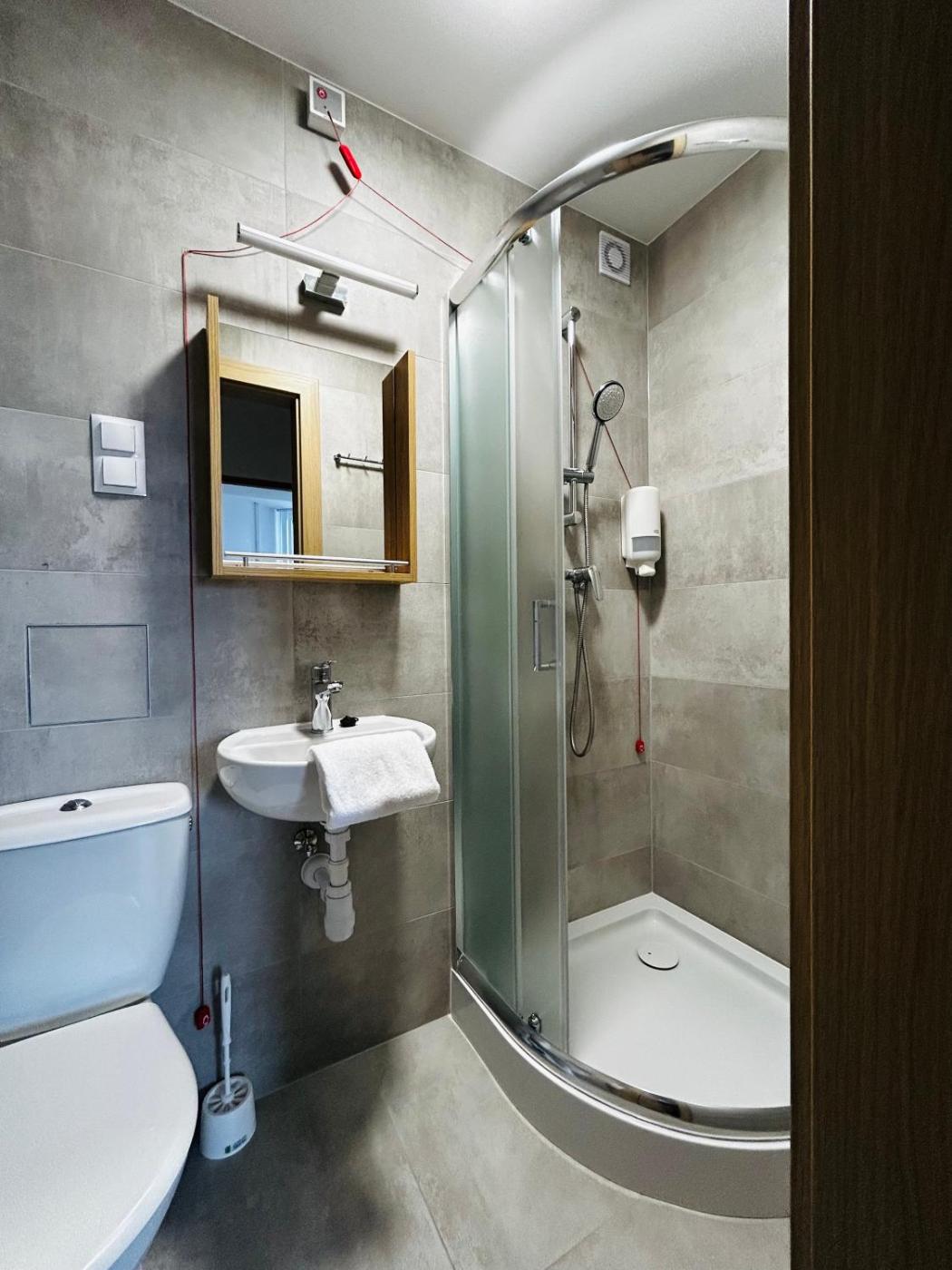 Pokój trzyosobowy. Jest to pokój trzyosobowy z łazienką, szafą, czajnikiem elektrycznym oraz balkonem. W opcji zakwaterowania znajdują się 3 łóżka. Pokój Trzyosobowy - 3 osobowy. Powierzchnia pokoju ok.: 30 mkw. ;