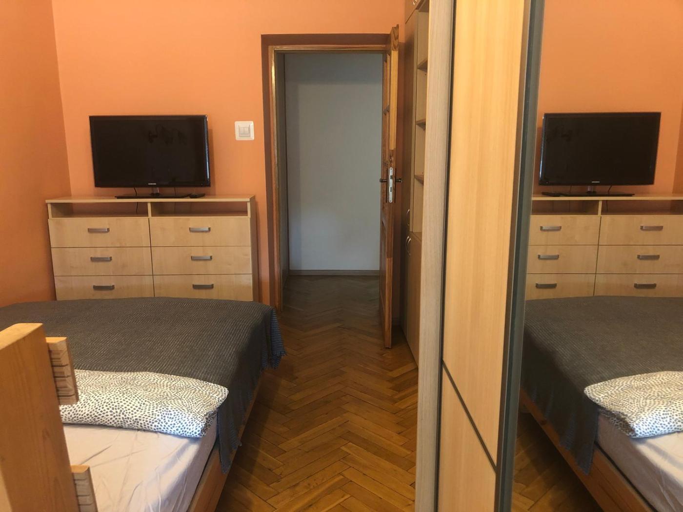 Pokój Trzyosobowy typu Basic. The triple room features a washing machine, a tea and coffee maker, as well as a shared bathroom boasting a shower. The triple room provides a wardrobe, tumble dryer and parquet floors and chocolate is available for guests. The unit has 2 beds. Pokój Trzyosobowy - 3 osobowy. Powierzchnia pokoju ok.: 14 mkw.